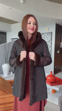 A timeless favorite, this best-selling 32" Sheared Mink Stroller offers effortless versatility and refined elegance. Available in black or brown, it features a reversible design with sleek, water-repellent taffeta for all-weather practicality.